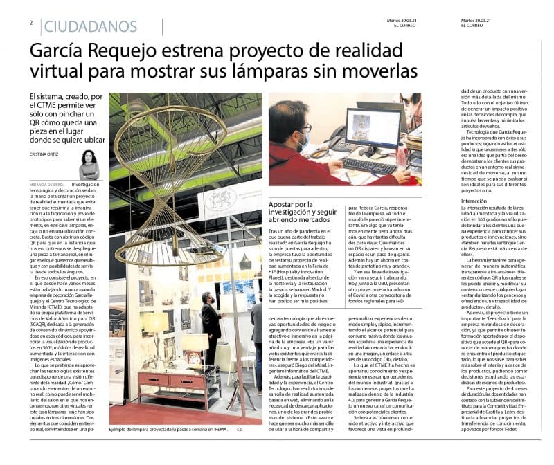 On March 29 of this year, a report of our participation in the IFEMA Fair, HIP Hospitality Innovation Planet, (March 22 to 24) was published in El Correo, in which the use of Augmented Reality was highlighted, which it was incorporated into the stand by QR codes.